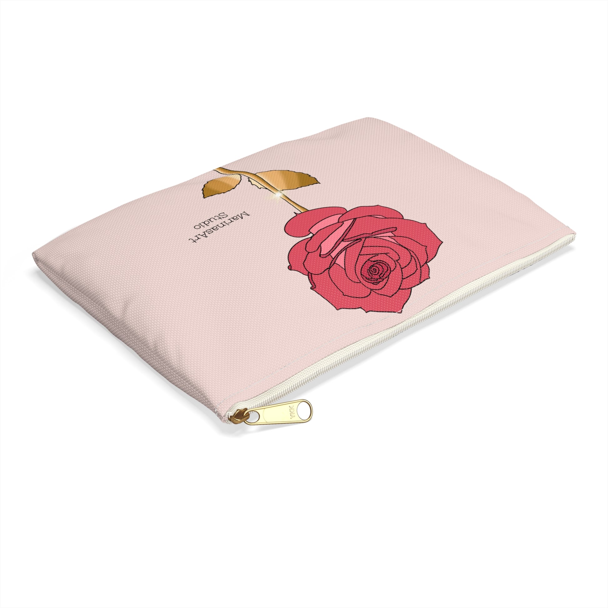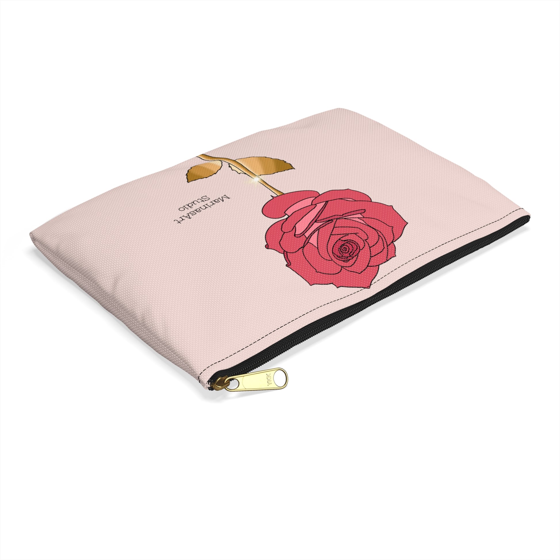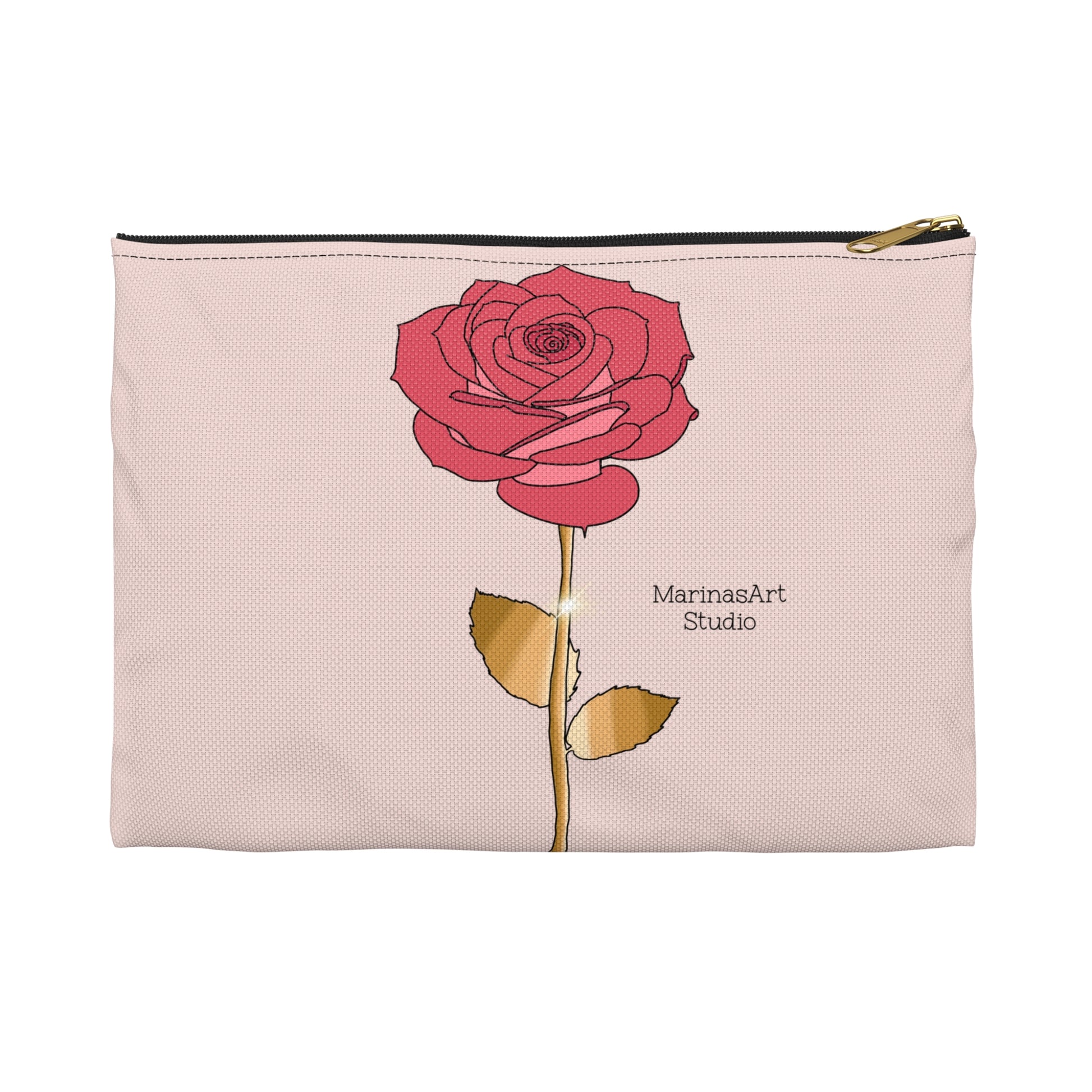 This flat pouch comes in small. It can be used for pretty much anything. They make excellent pencil cases and cosmetic travel bags. It is made from durable material with a zipper closure. The zipper and lining comes in colors black or white.